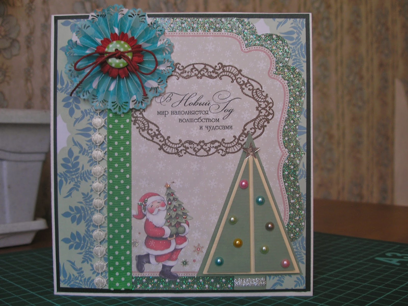 На этом собственно говоря и закончился мой 2012 творческий год, и начался новый 2013 с открытки с самодельными цветочками: